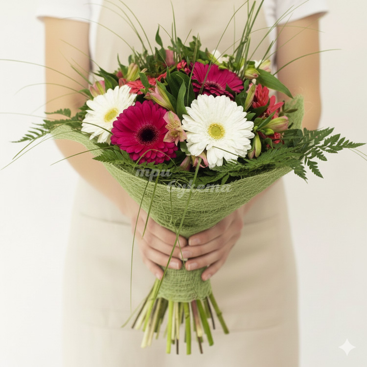 - Герберы (красные и белые), 9 шт.