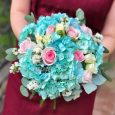 Букет фиолетовых гортензий с хризантемами