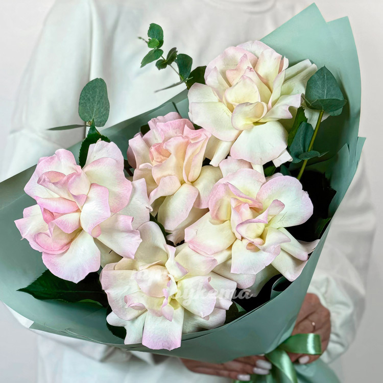 Букет из 5 нежно-розовых французских роз