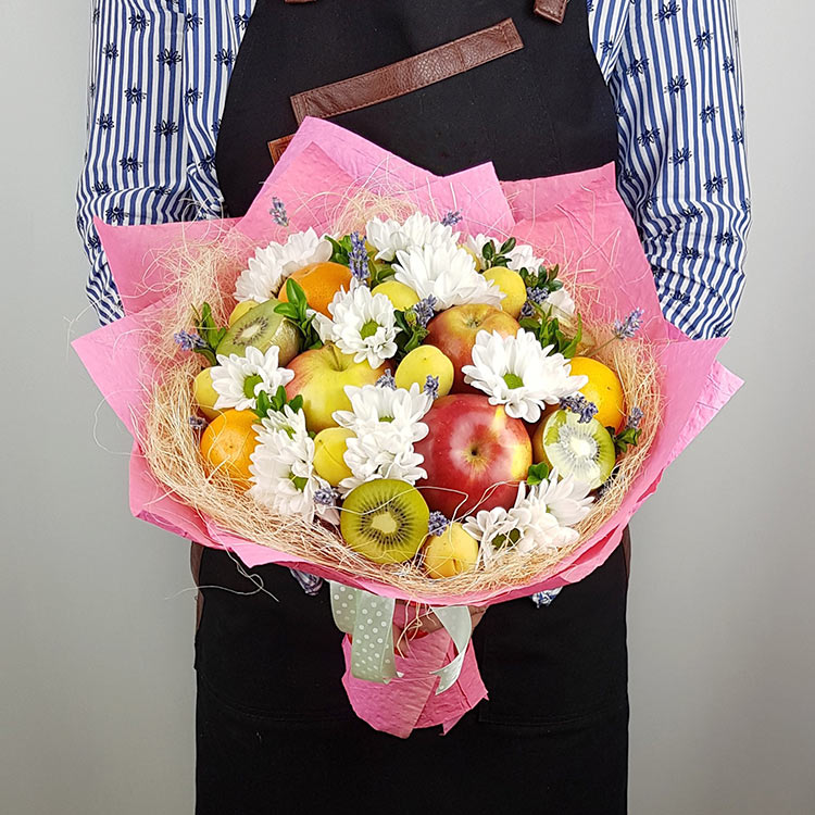 Букет из фруктов и хризантем