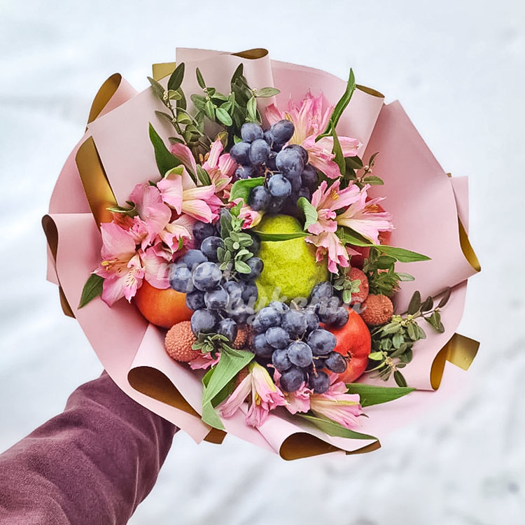 Букет из винограда, яблок и цветов