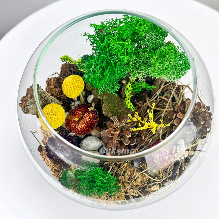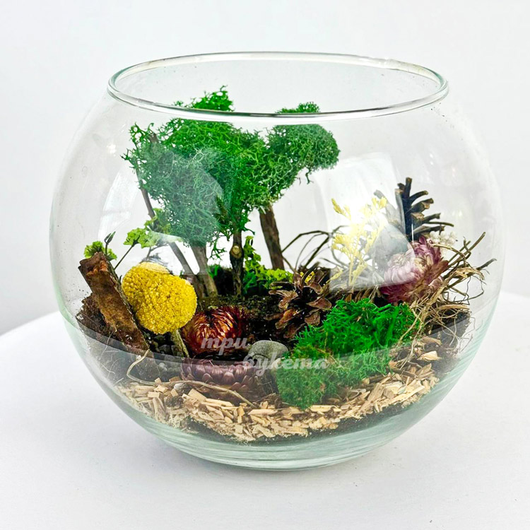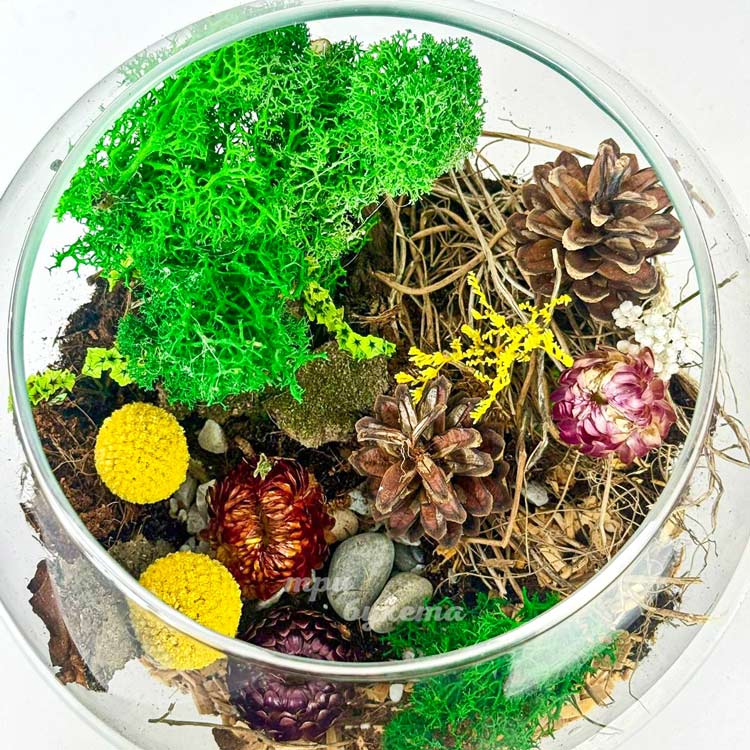 Флорариум из сухоцветов, шишек и мхов