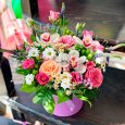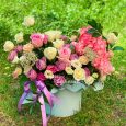 Каллы и розы в шляпной коробке