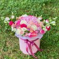 Коробочка с розовой гипсофилой и статицей