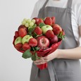 Корзина нежно-розовых роз и эустом
