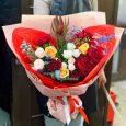 Красный букет с цветами и хлопком