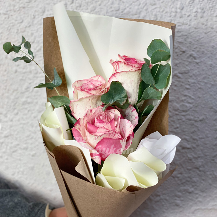 Мини-букет из 3 роз в крафте