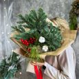 Зеленый новогодний букет с цветами